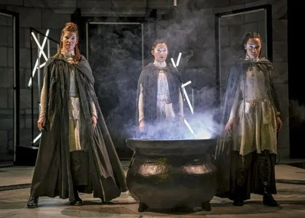 As we see Macbeth and his army fight, the witches dance in the midst – only “visible” to the audience. They weave in and out of the soldiers, signaling that their magical influence has already begun. Lyons interweaves the sisters into the story throughout the play, and immediately sets up this vocabulary at the very beginning with an intensely theatrical event.